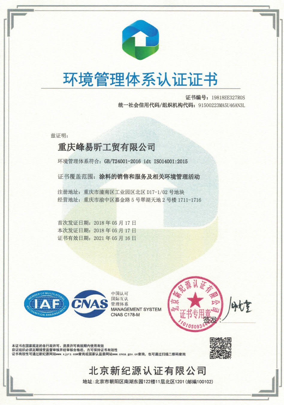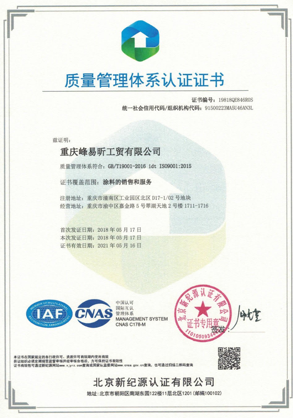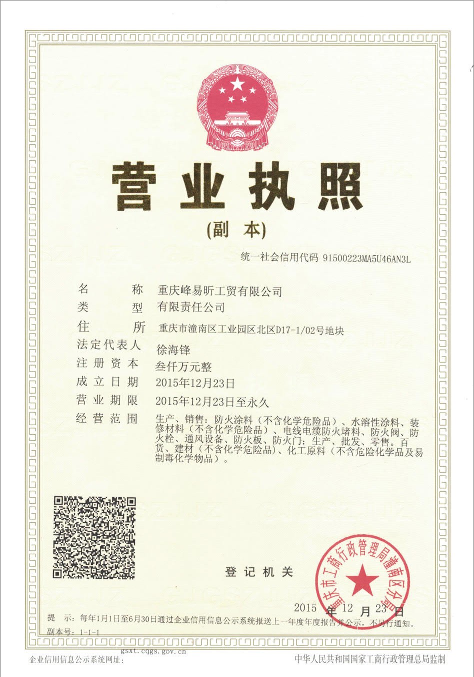 重慶峰易昕工貿(mào)有限公司通過(guò)