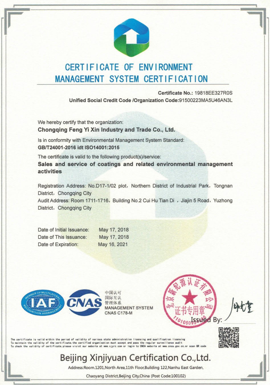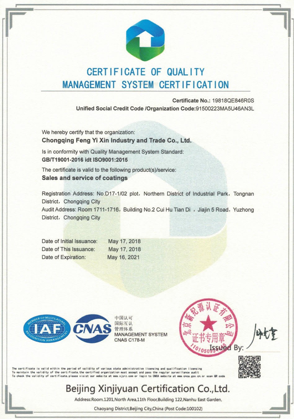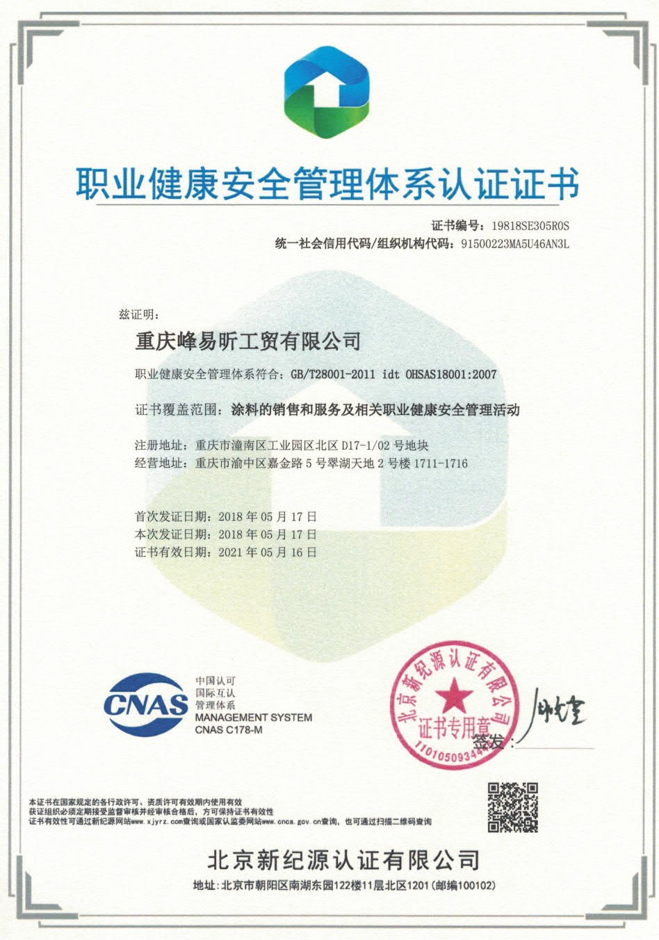 重慶峰易昕工貿(mào)有限公司通過(guò)